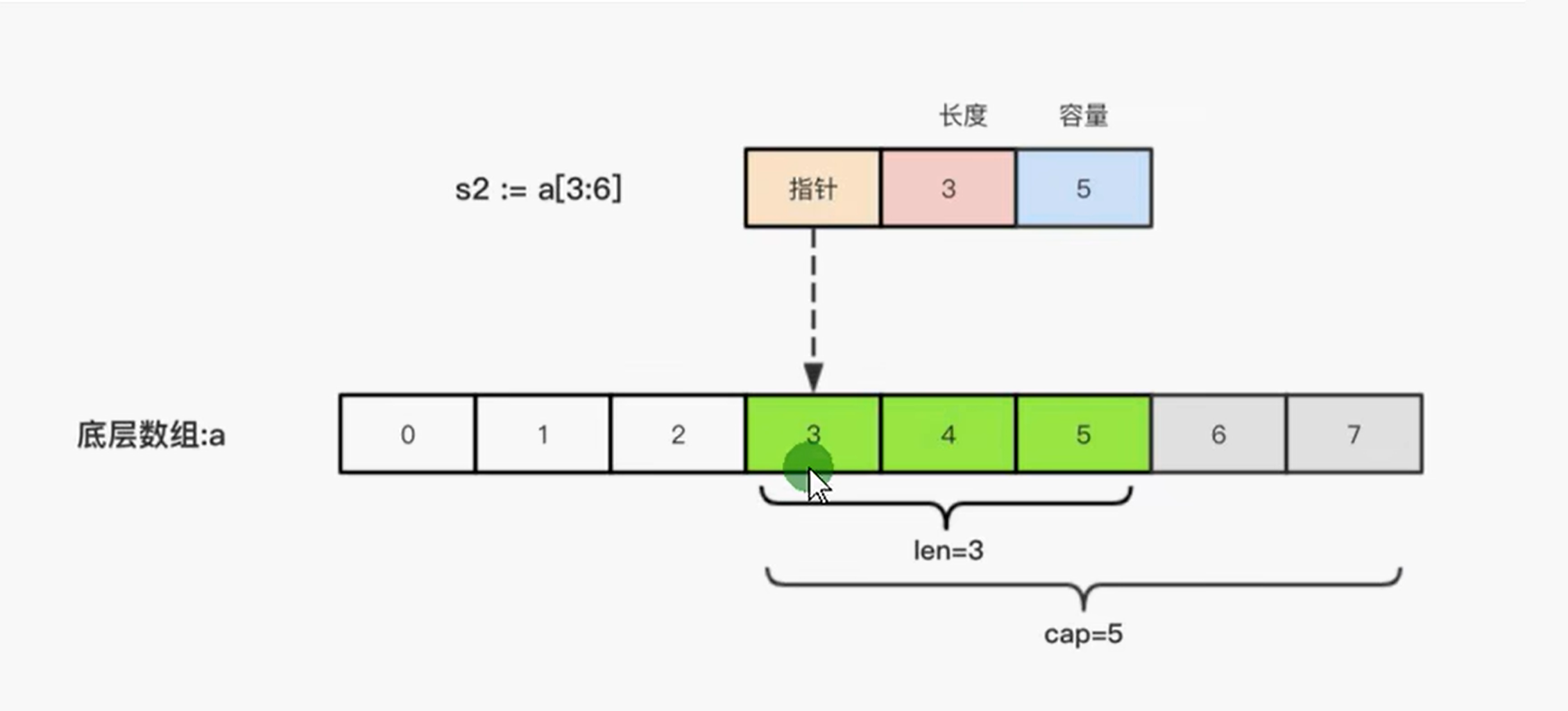 slice 是一个拥有相同类型元素的可变长度的序列。它是基于数组类型做的一层封装。它非常灵活,支持自动扩容。 切片是一个**引用类型**,它的内部结构包含 地址 长度 和 容量。 ``` var a []type var a = []type{.....} ``` ``` func main() { var a = [5]int{2, 3, 4, 5, 6} b := a[:] //b 等于 a数组 fmt.Printf("b: %v\n b type %T", b, b) /* b: [2 3 4 5 6] b type []int b的类型是slice */ } ``` **切片拥有自己的长度和容量,我们可以通过使用内置的len()函数求长度,使用内置的cap()函数求切片的容量。** 切片的长度就是它所包含的元素个数。 切片的容量是从它的一个元素开始数,到其底层数组元素末尾的个数。 切面s的长度和容量可通过表达式len(s) 和 cap(s) 来获取。 ``` func main() { var a = []int{1, 2, 3, 4, 5, 6} fmt.Printf("a: %v a切片的长度 %v a切片的容量 %v \n", a, len(a), cap(a)) b := a[2:] fmt.Printf("b: %v b切片的长度 %v b切片的容量 %v \n", b, len(b), cap(b)) c := a[1:3] fmt.Printf("c: %v c切片的长度 %v c切片的容量 %v \n", c, len(c), cap(c)) /* a: [1 2 3 4 5 6] a切片的长度 6 a切片的容量 6 b: [3 4 5 6] b切片的长度 4 b切片的容量 4 c: [2 3] c切片的长度 2 c切片的容量 5 */ } ```   ## 使用make函数构造切片 ``` make([]Type,Size,Cap)// 切片元素类型 元素数量 容量 ``` ## golang中如果需要给切片扩容需要使用append()方法 ``` func main() { var a []int a = append(a, 12) fmt.Printf("a: %v a长度 %v a容量 %v \n", a, len(a), cap(a)) a = append(a, 13) fmt.Printf("a: %v a长度 %v a容量 %v \n", a, len(a), cap(a)) a = append(a) fmt.Printf("a: %v a长度 %v a容量 %v \n", a, len(a), cap(a)) } /* a: [12] a长度 1 a容量 1 a: [12 13] a长度 2 a容量 2 a: [12 13] a长度 2 a容量 2 */ ``` ## append 方法合并切片 ``` func main() { var sliceA = []string{"golong", "java"} var sliceB = []string{"php", "nodejs"} sliceA = append(sliceA, sliceB...) fmt.Printf("sliceA: %v\n", sliceA) /* sliceA: [golong java php nodejs] */ } ``` ## 切片的扩容策略 ``` func main() { var sliceA []int for i := 1; i <= 20; i++ { sliceA = append(sliceA, i) fmt.Printf("sliceA: %v sliceA长度 %v sliceA容量 %v\n ", sliceA, len(sliceA), cap(sliceA)) } /* [Running] go run "c:\Users\david\Desktop\mypro\main.go" sliceA: [1] sliceA长度 1 sliceA容量 1 sliceA: [1 2] sliceA长度 2 sliceA容量 2 sliceA: [1 2 3] sliceA长度 3 sliceA容量 4 sliceA: [1 2 3 4] sliceA长度 4 sliceA容量 4 sliceA: [1 2 3 4 5] sliceA长度 5 sliceA容量 8 容量会翻倍 sliceA: [1 2 3 4 5 6] sliceA长度 6 sliceA容量 8 sliceA: [1 2 3 4 5 6 7] sliceA长度 7 sliceA容量 8 sliceA: [1 2 3 4 5 6 7 8] sliceA长度 8 sliceA容量 8 sliceA: [1 2 3 4 5 6 7 8 9] sliceA长度 9 sliceA容量 16 容量会翻倍 sliceA: [1 2 3 4 5 6 7 8 9 10] sliceA长度 10 sliceA容量 16 sliceA: [1 2 3 4 5 6 7 8 9 10 11] sliceA长度 11 sliceA容量 16 sliceA: [1 2 3 4 5 6 7 8 9 10 11 12] sliceA长度 12 sliceA容量 16 sliceA: [1 2 3 4 5 6 7 8 9 10 11 12 13] sliceA长度 13 sliceA容量 16 sliceA: [1 2 3 4 5 6 7 8 9 10 11 12 13 14] sliceA长度 14 sliceA容量 16 sliceA: [1 2 3 4 5 6 7 8 9 10 11 12 13 14 15] sliceA长度 15 sliceA容量 16 sliceA: [1 2 3 4 5 6 7 8 9 10 11 12 13 14 15 16] sliceA长度 16 sliceA容量 16 sliceA: [1 2 3 4 5 6 7 8 9 10 11 12 13 14 15 16 17] sliceA长度 17 sliceA容量 32 容量会翻倍 sliceA: [1 2 3 4 5 6 7 8 9 10 11 12 13 14 15 16 17 18] sliceA长度 18 sliceA容量 32 sliceA: [1 2 3 4 5 6 7 8 9 10 11 12 13 14 15 16 17 18 19] sliceA长度 19 sliceA容量 32 sliceA: [1 2 3 4 5 6 7 8 9 10 11 12 13 14 15 16 17 18 19 20] sliceA长度 20 sliceA容量 32 */ } ``` ## 使用copy()函数 复制slice 切片就是引用数据类型 ``` func main() { var sliceA = []int{1, 2, 3, 4, 5, 6} sliceB := sliceA sliceB[0] = 11 fmt.Printf("sliceA: %v\n", sliceA) fmt.Printf("sliceB: %v\n", sliceB) /* sliceA: [11 2 3 4 5 6] sliceB: [11 2 3 4 5 6] 当sliceB 修改时 sliceA 内容也更改了 */ } sliceA 与 sliceB 使用同一个存储空间 ``` 使用 copy 函数来复制 slice 切片 ``` func main() { var sliceA = []int{1, 2, 3, 4, 5, 6} sliceACopy := make([]int, len(sliceA)) copy(sliceACopy, sliceA) fmt.Printf("sliceA: %v\n", sliceA) fmt.Printf("sliceACopy: %v\n", sliceACopy) sliceA[0] = 11 //修改 sliceA[0] 为 11 //输出 sliceA and sliceACopy fmt.Printf("sliceA: %v\n", sliceA) fmt.Printf("sliceACopy: %v\n", sliceACopy) /* sliceA: [1 2 3 4 5 6] sliceACopy: [1 2 3 4 5 6] copy 修改后 sliceA: [11 2 3 4 5 6] sliceACopy: [1 2 3 4 5 6] */ } ``` ## 从切片中删除元素 go 语言中并没有删除切片元素的专用方法,我们可以使用切片本身的特性来删除元素。 ``` func main() { var sliceA = []int{1, 2, 3, 4, 5, 6} //删除下标为2的数据 sliceA = append(sliceA[:2], sliceA[3:]...) // 注意append 的参数后面的... fmt.Printf("sliceA: %v\n", sliceA) //sliceA: [1 2 4 5 6] } ```
